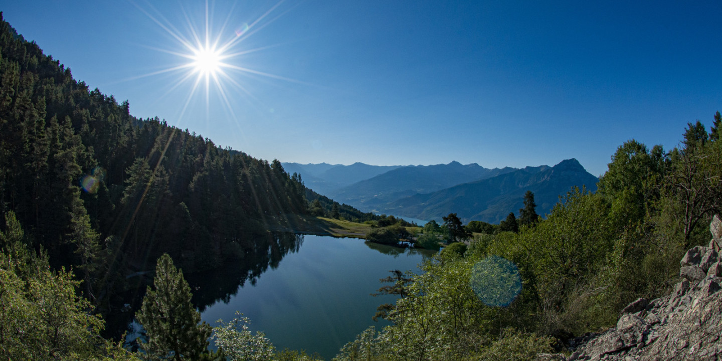 Mit Blick auf das Tal der Durance und einem atemberaubenden Blick auf den Lac de Serre-Ponçon ist dieser kleine See von Gletscherursprung ein beliebtes Ziel für Naturliebhaber und Ruhesuchende.