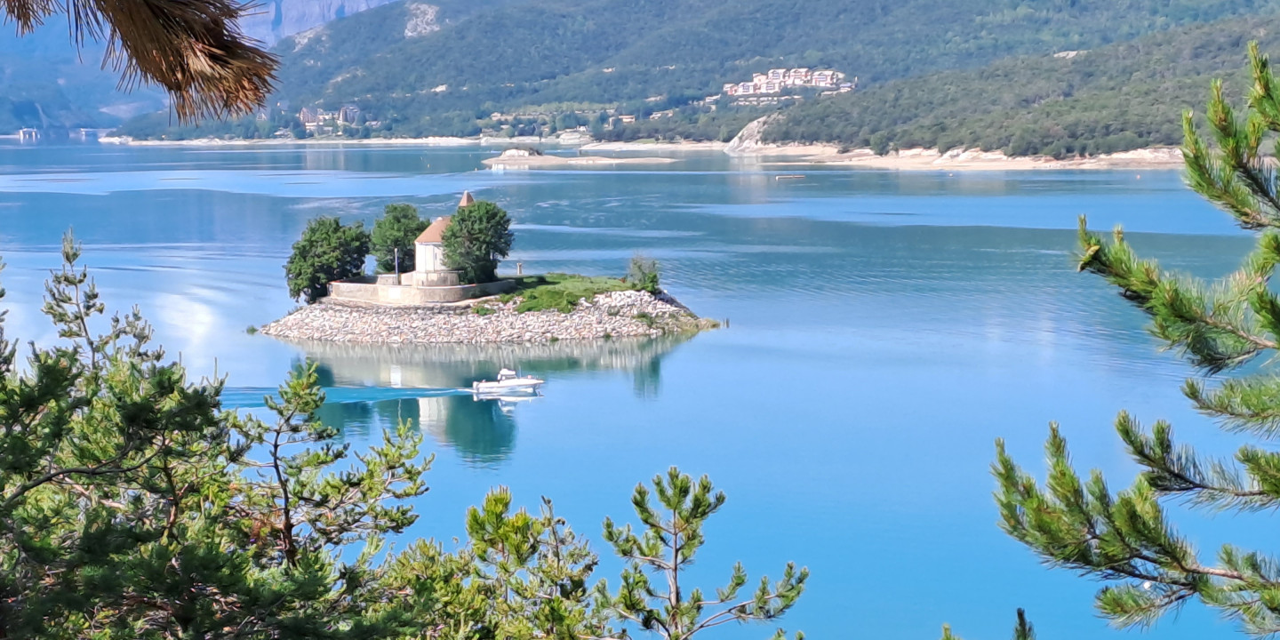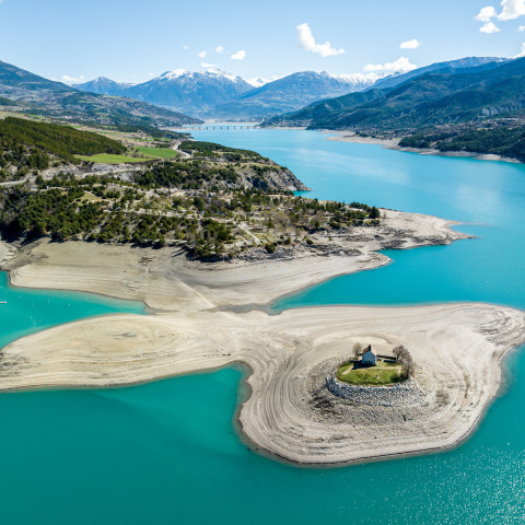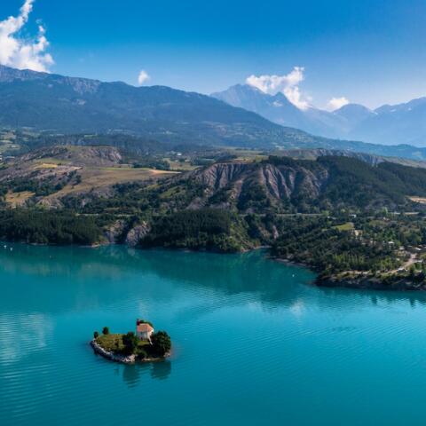 Kapelle Saint-Michel: Die emblematische Insel des Sees von Serre-Ponçon in den Hautes-Alpes