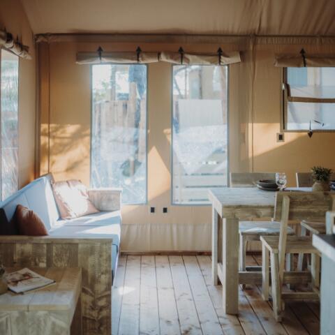 - Luxus-Bereich: High-End-Unterkünfte komplett ausgestattet auf den ersten Campingplatz mit einigen einen atemberaubenden Blick auf den See. Entdecken Sie die Freuden des Campings mit Hoteldienstleistungen (Betten bei der Ankunft gemacht, Badetücher zur Verfügung gestellt, Endreinigung inbegriffen)