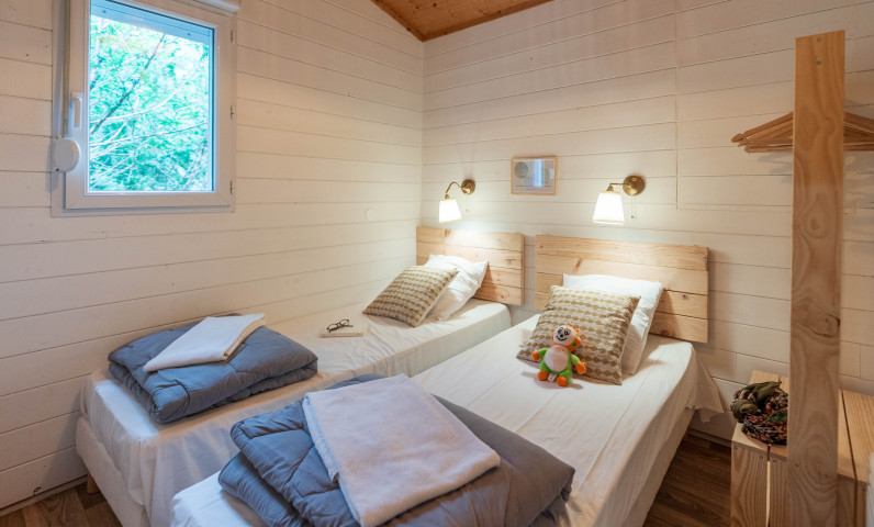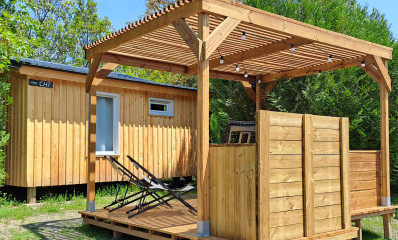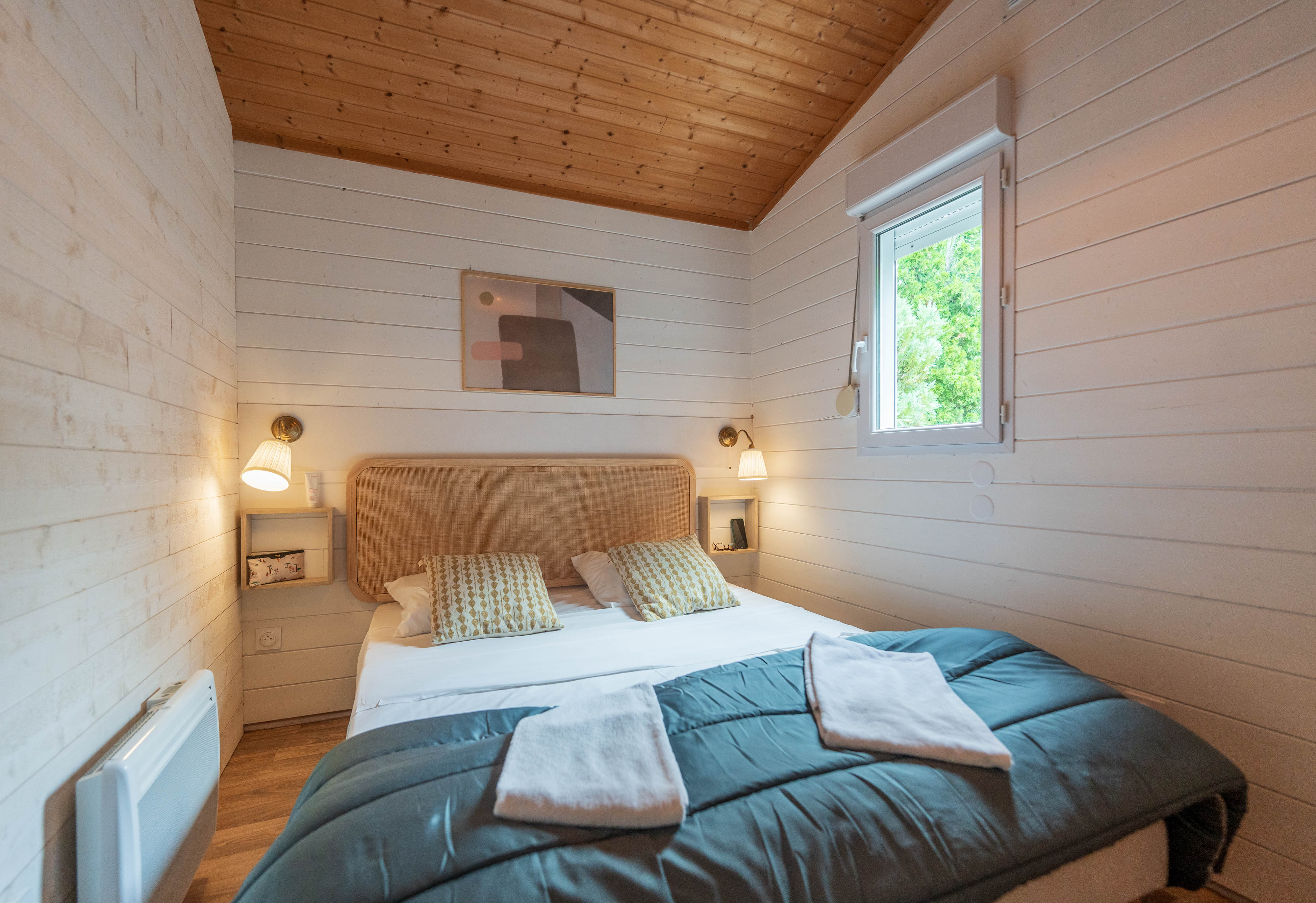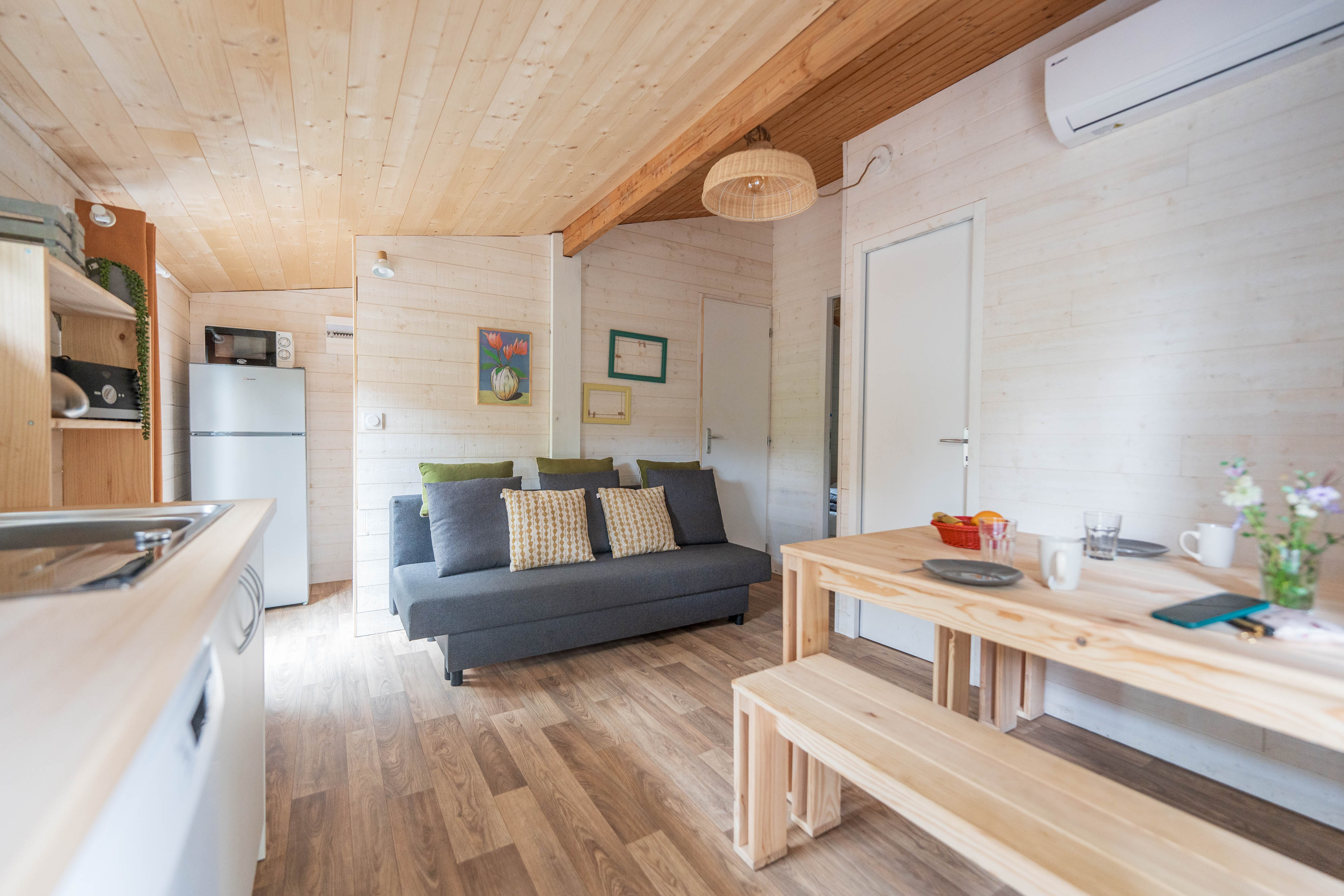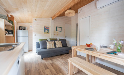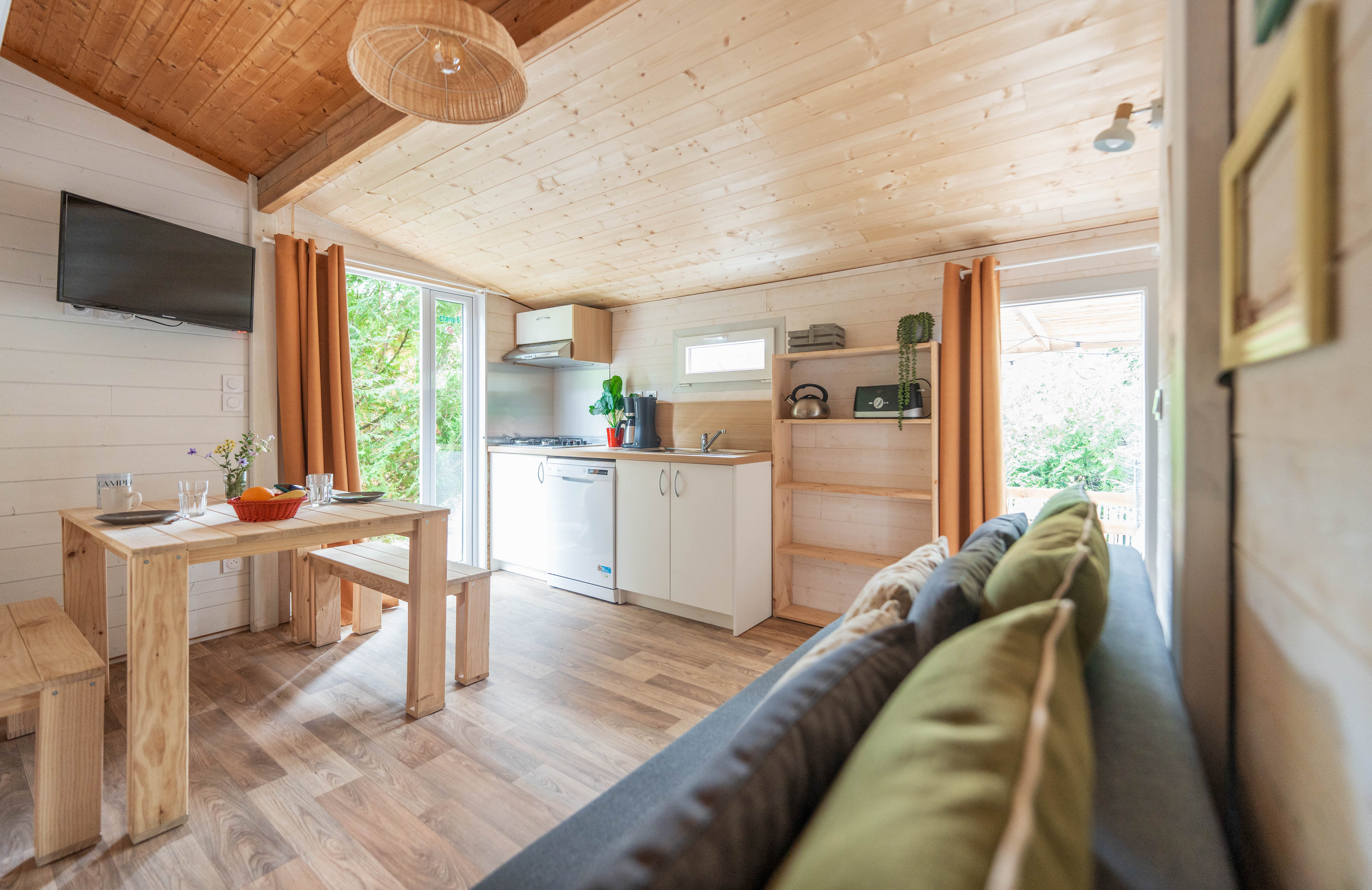 Genießen Sie dieses Prestige-Chalet in der Mitte des Campingplatzes, in einer Fußgängerzone.