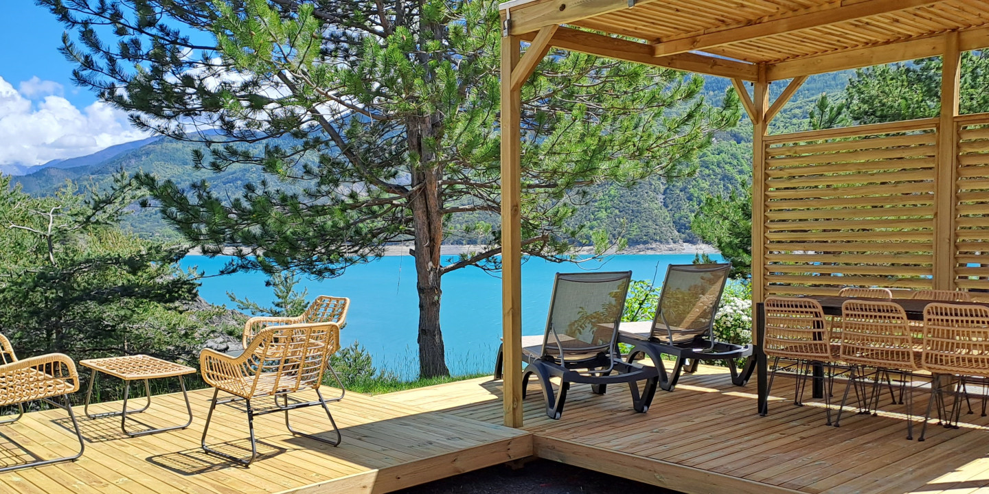 Sunêlia Luxe 6-Personen-Durchreise 33m 2: Außergewöhnliches Mobilheim am Ufer des Sees von Serre-Ponçon