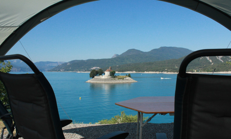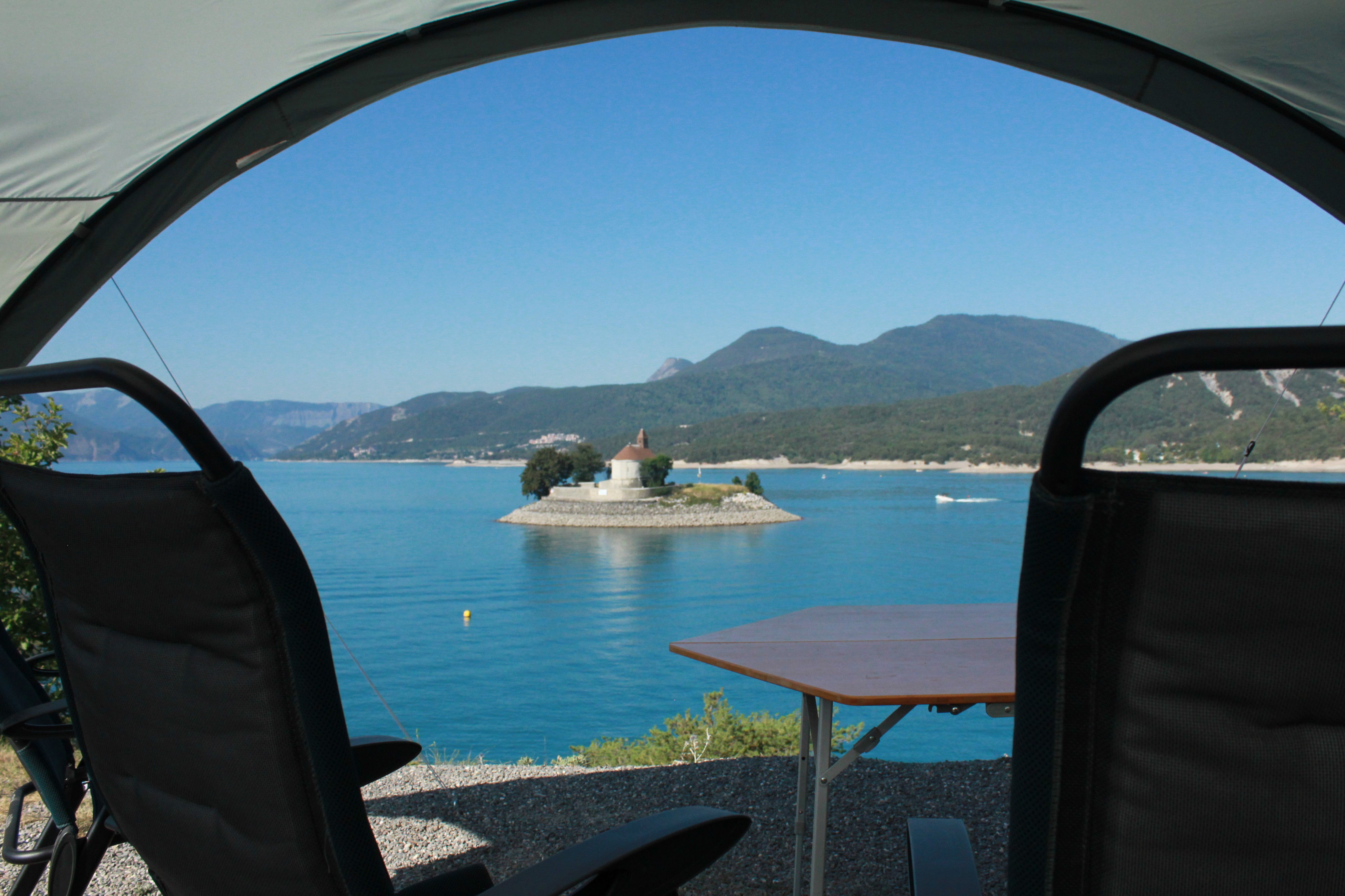 In erster Linie mit Blick auf den See von Serre-Ponçon, genießen Sie Ihren einzigartigen Campingplatz an sich von fast 80 m 2!