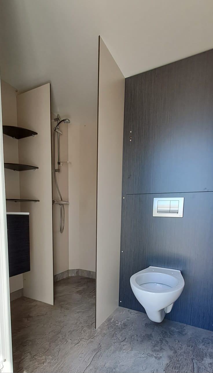 Die perfekte Kombination aus Campingvergnügen und alltäglichem Komfort. Jeder Stellplatz ist mit modernen privaten Sanitäranlagen ausgestattet, darunter eine Dusche, WC, Waschbecken und Kühlschrank. Dieser spezielle Bereich garantiert Ihnen einwandfreie Hygiene und absolute Privatsphäre. Um die schönen Tage in vollen Zügen zu genießen, verfügen die Stellplätze mit Luxus-Sanitäranlagen über eine private Holzterrasse.