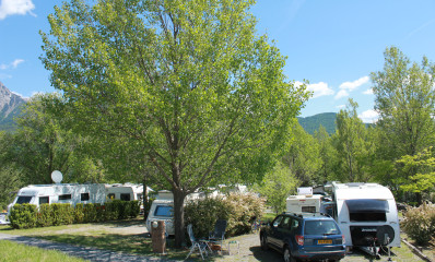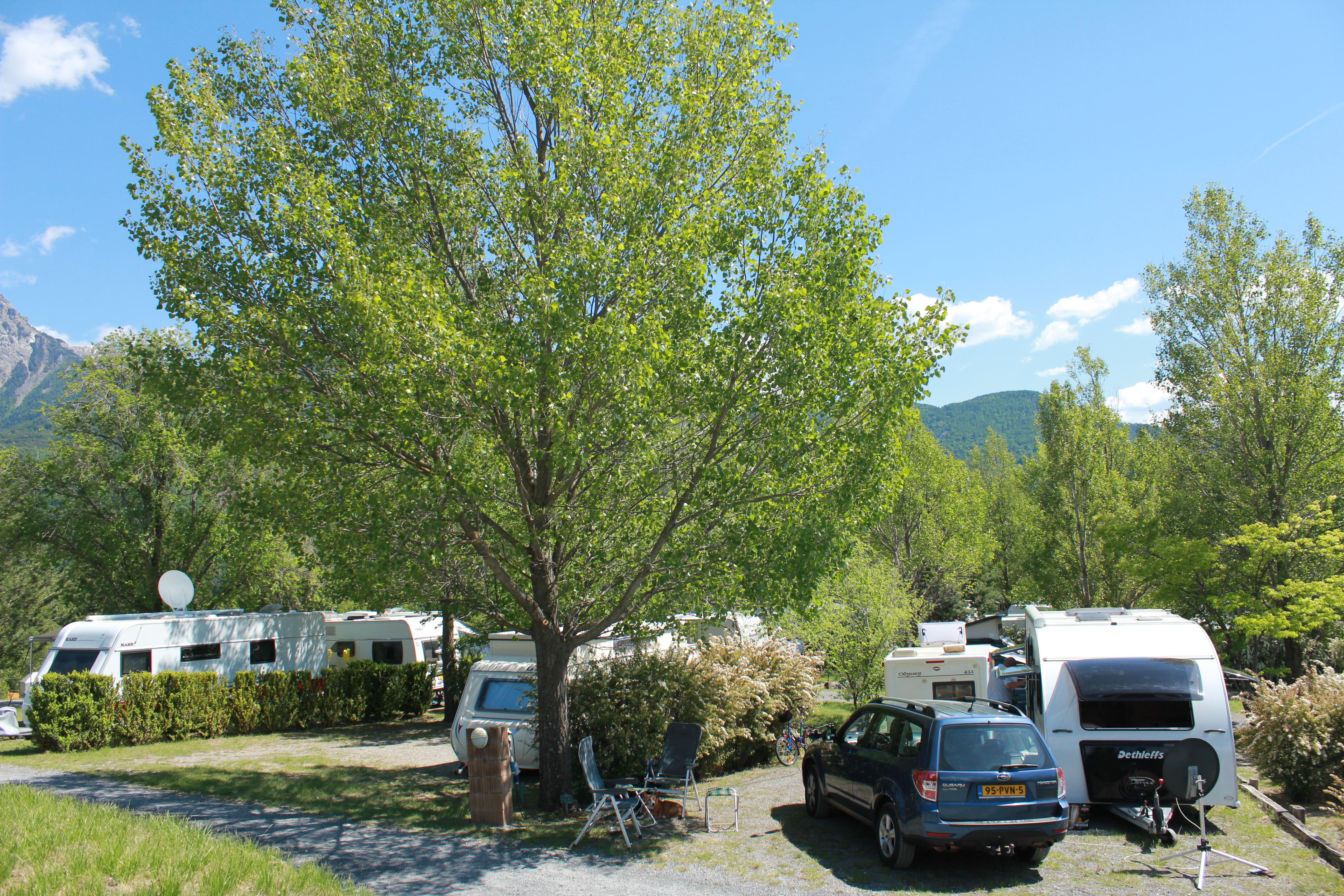 An einem einzigartigen Ort, zwischen See und Bergen, genießen Sie Ihren Campingplatz von fast 80 m2 mit 6-Ampere-Strom!