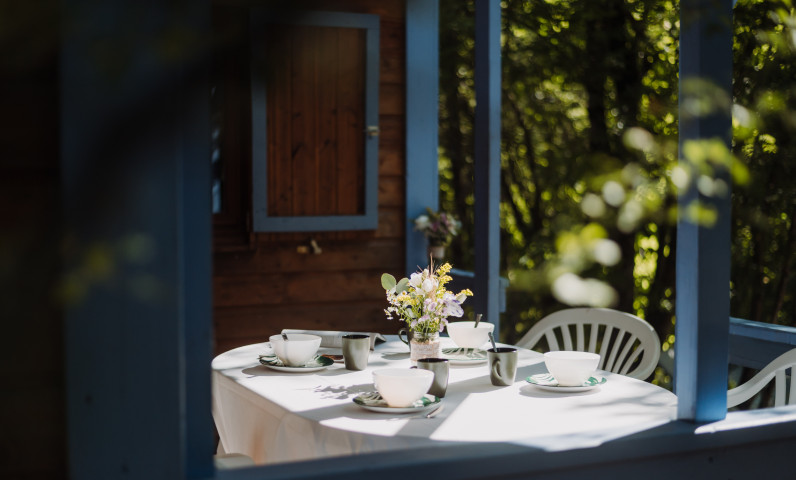 - Covered wooden terrace