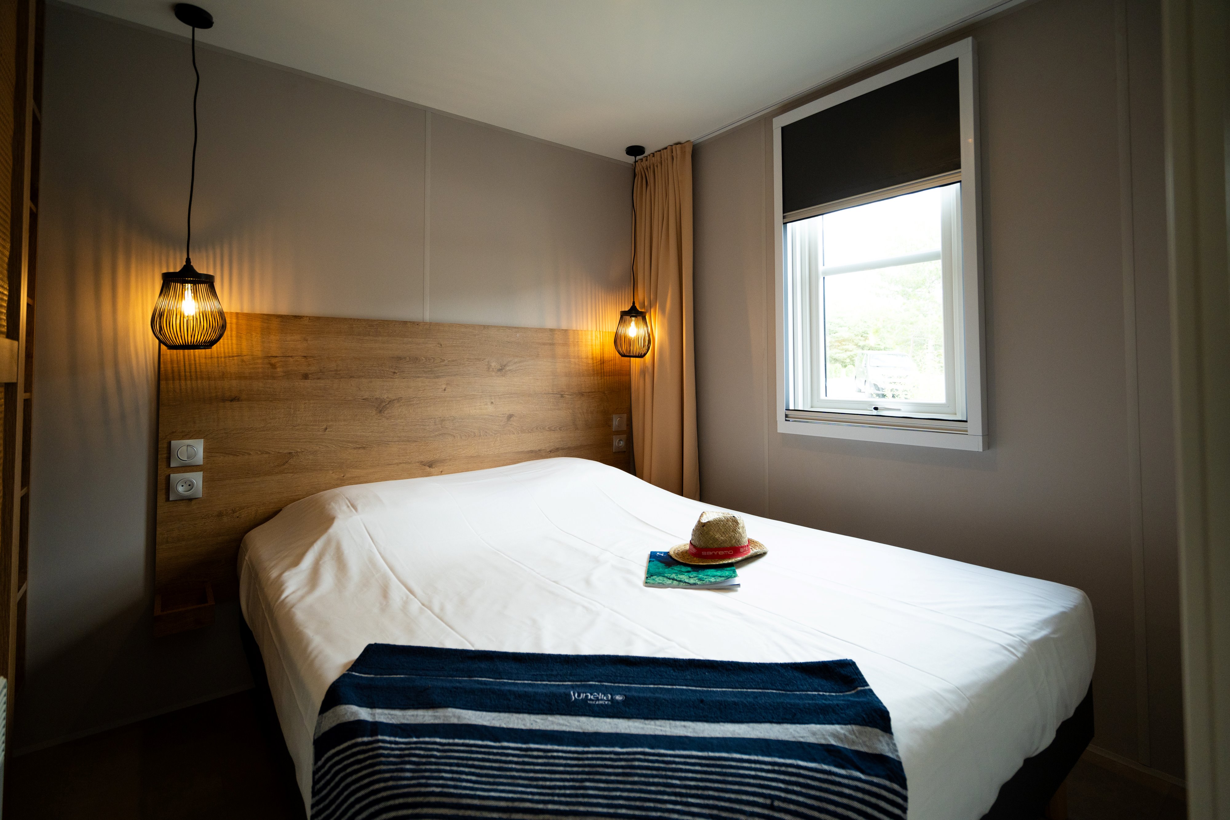 Designed to accommodate your large tribe or your many friends, take advantage of the living space to accommodate the whole family with a 6-person mobile home and its 2-person outbuilding, for more privacy. Enjoy sharing time with your family or friends on the spacious terrace for convivial meals.