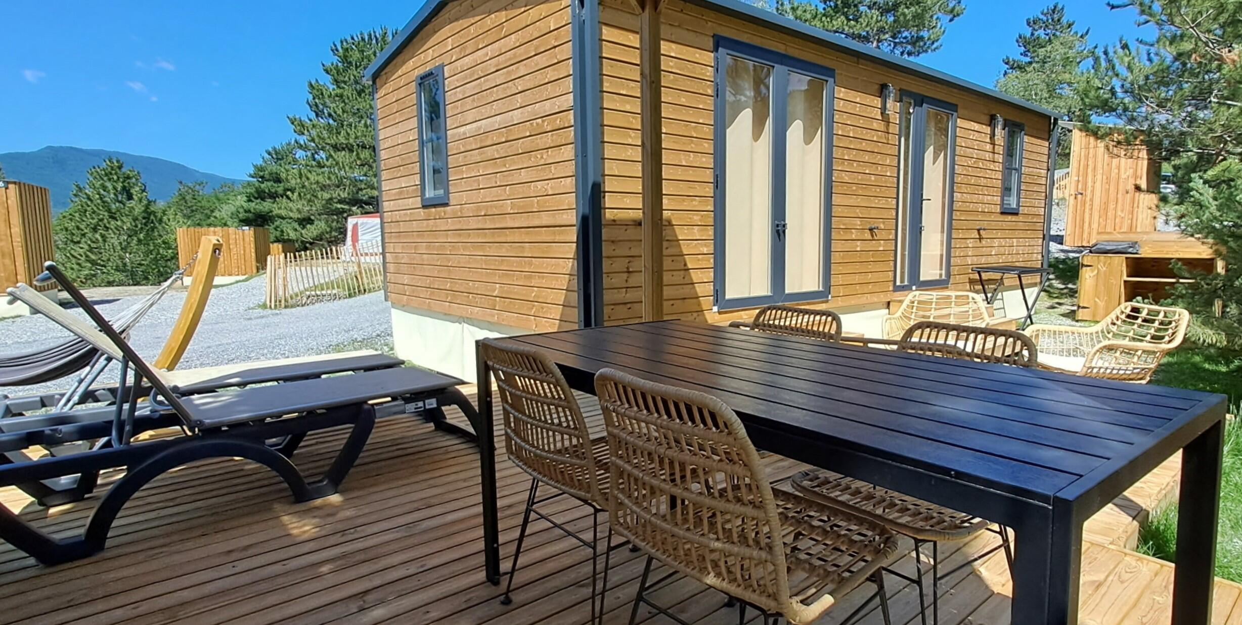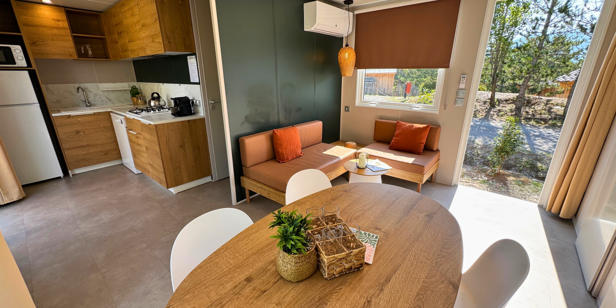 Situated on the heights of the campsite, the Sunêlia Luxe 4 people 31.60m² is perfect for those looking to let go.