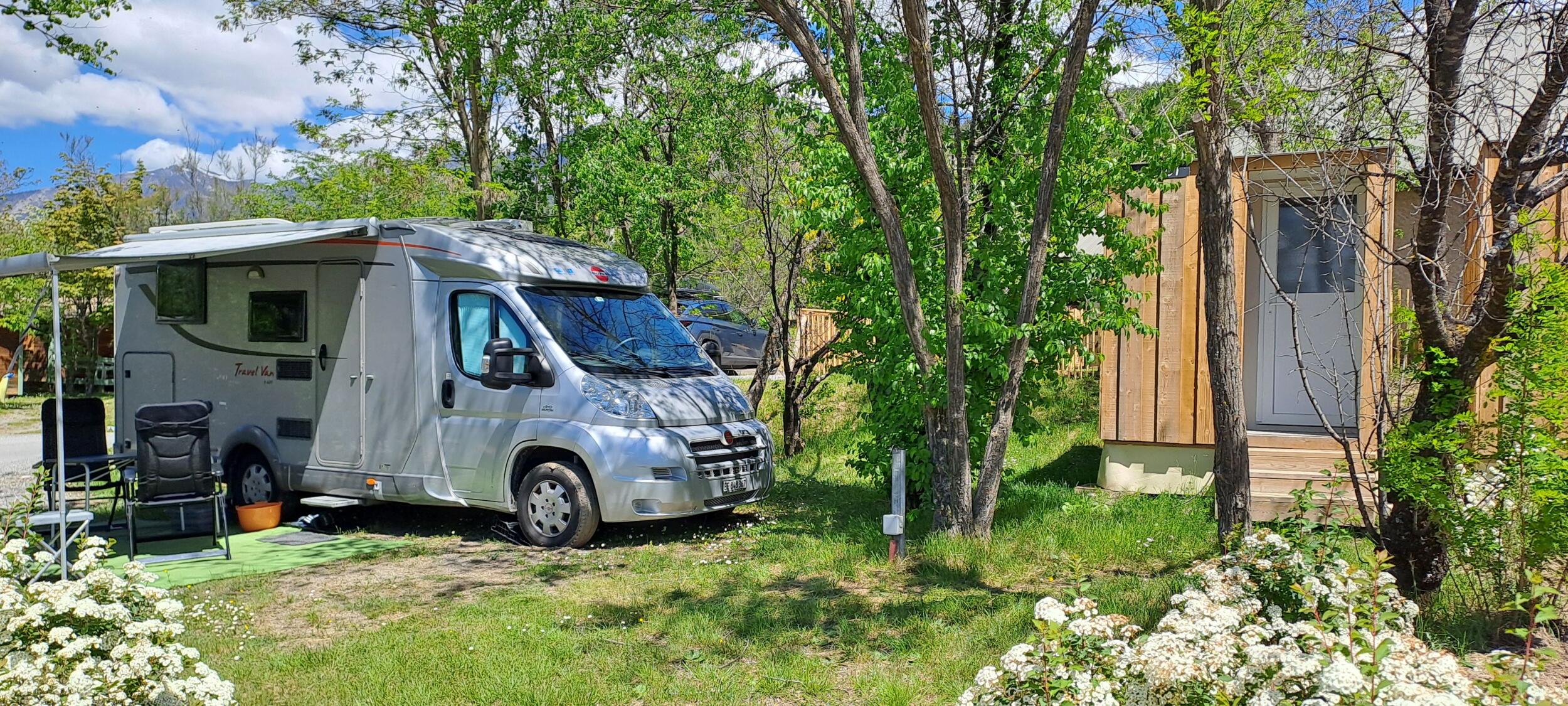 Emplacement de camping Premium avec Sanitaires Privés proche du Lac de Serre-Ponçon, dans les Hautes-Alpes