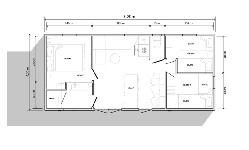 - Lit 2 places (160x200) (couette et oreillers fournis)