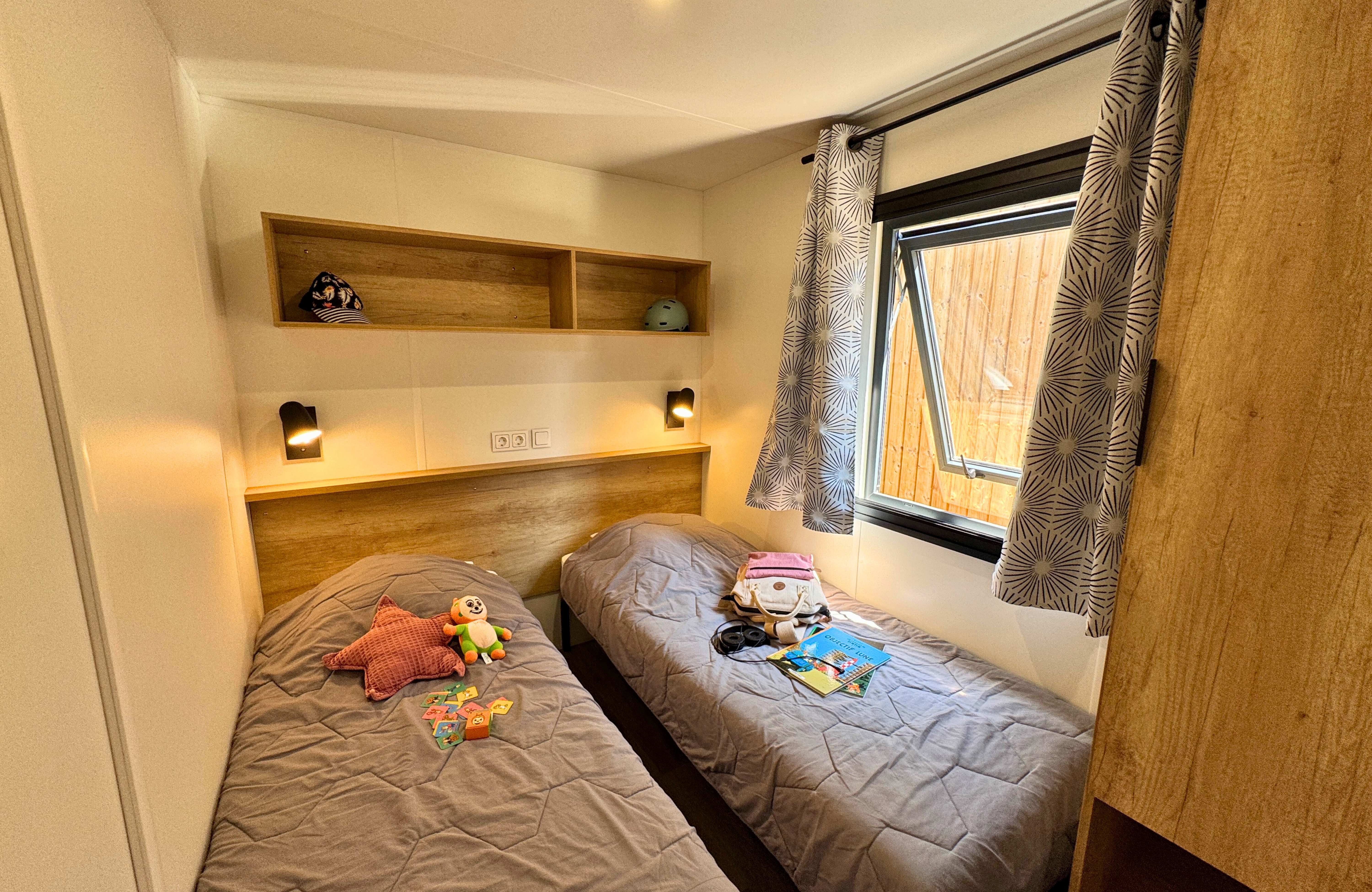 Situé au coeur du camping, appréciez ce mobil-home équipé et climatisé, qui vous apportera le confort nécessaire à votre séjour