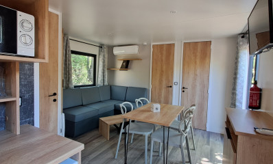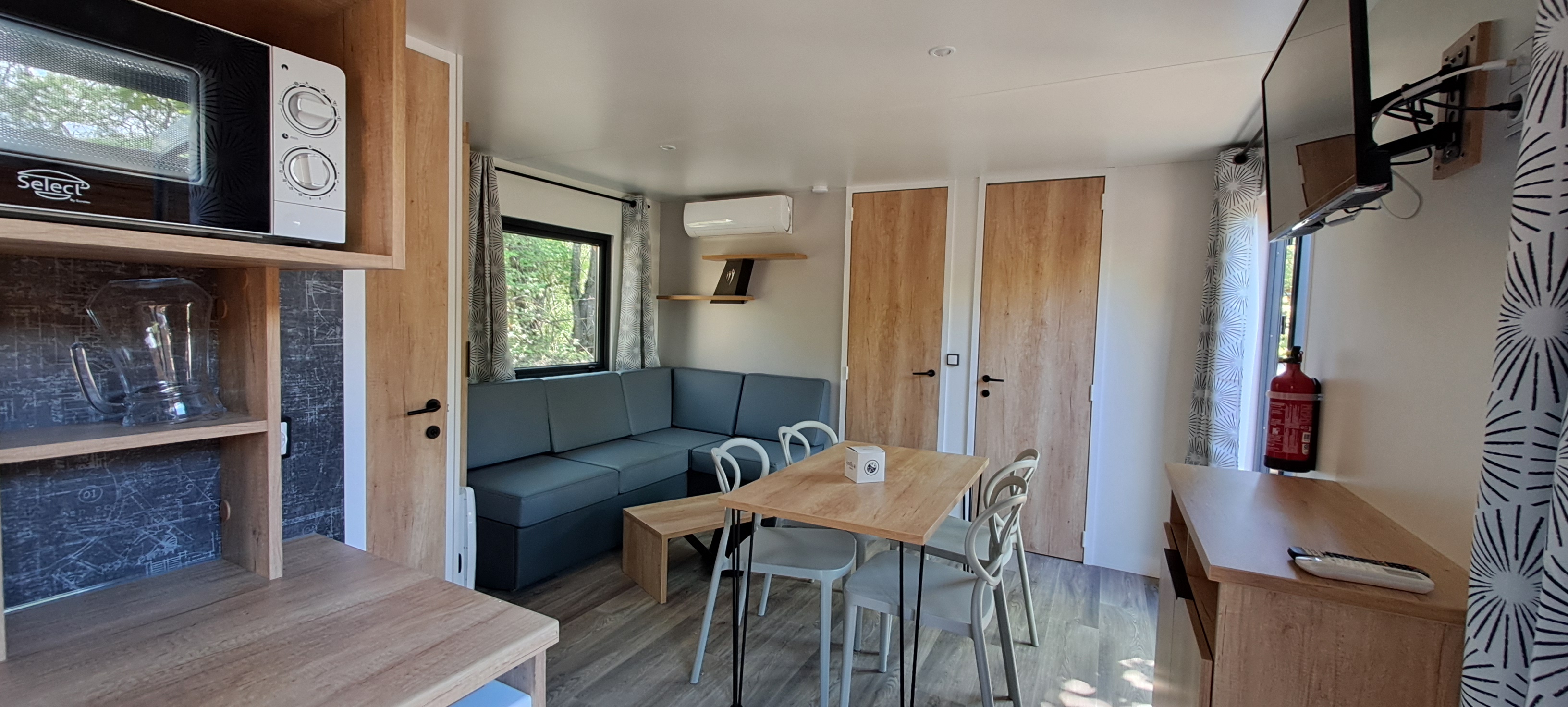 Idéal pour se retrouver en famille ou entre amis en toute convivialité, profitez de cet hébergement équipé et climatisé au coeur du camping.
