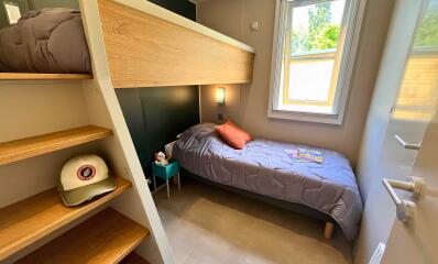 Profitez de ce Mobil-home réalisé avec finesse et sa terrasse couverte dans une ambiance cosy et chaleureuse.