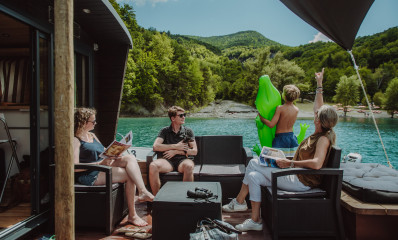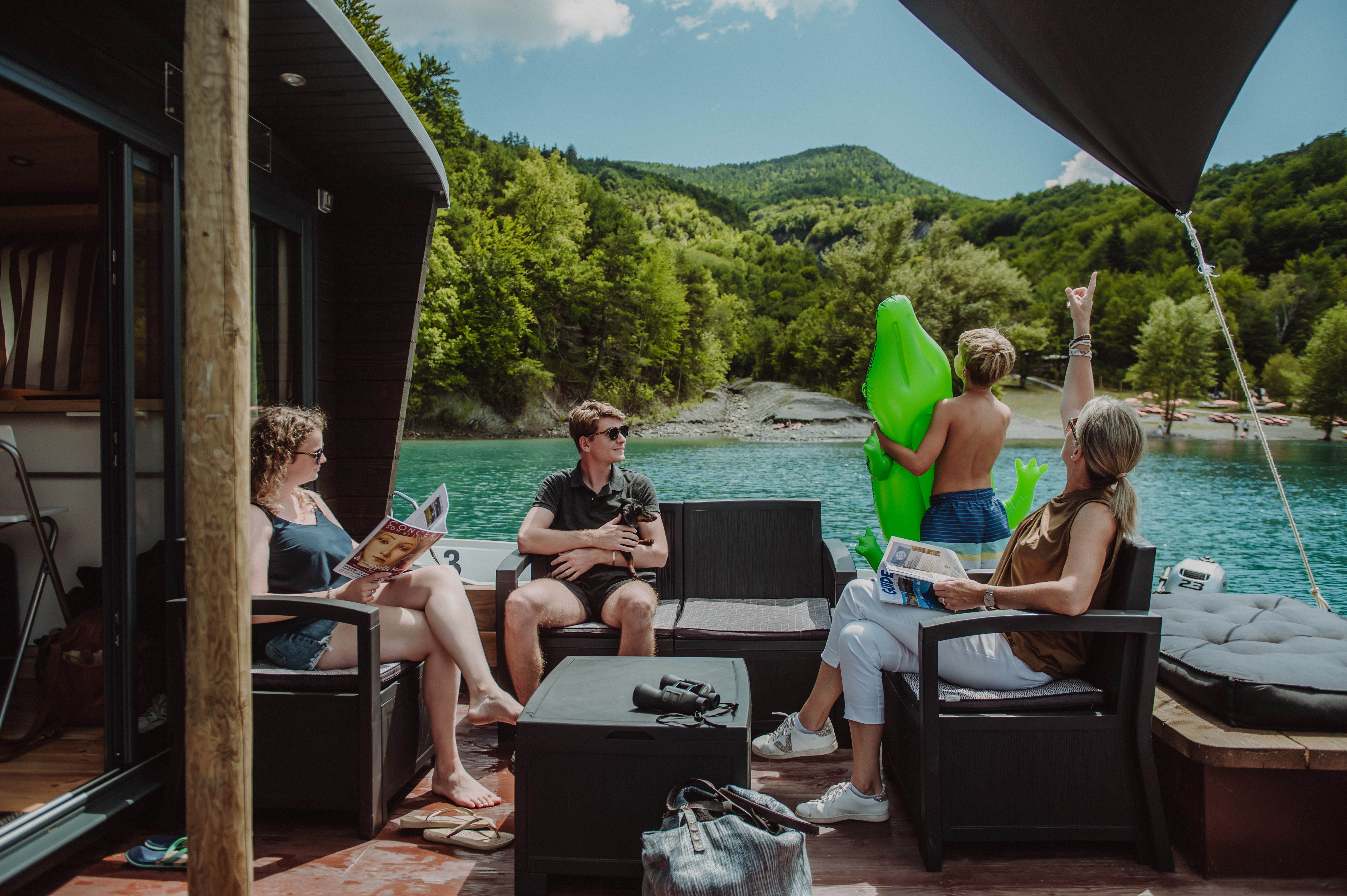 De toues bieden plaats aan maximaal 5 personen en zijn uitgerust met een eigen roeiboot en 2 peddels om u te verplaatsen. Liefhebbers van slow tourism kunnen hier tot rust komen bij het geluid van kabbelend water, een yogasessie volgen met 360° uitzicht over het meer of peddelen in de ongerepte kreken in de omgeving.